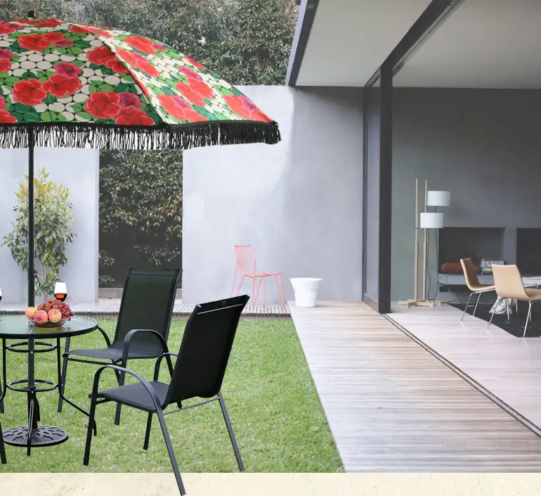 - Ткань: Ищите зонтики с ультрафиолеточной тканью. Полиэфир, нейлон или акрил являются общими материалами, которые блокируют ультрафиолетовые лучи и достаточно долговечны для расширенного использования. Некоторые зонтики также имеют вентилируемый навес, который позволяет проходить ветер, снижая риск раздувания зонта.